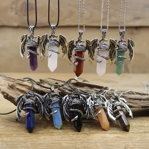 ビンテージクォーツドラゴンペンダントLapisアメジストタイガーアイアベンチュリン宝石