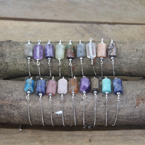 トレンディなボヘミアブレスレットファセットラブラドライトシルバーチェーン調整可能ラピスアメジストアパティートAmazoniteクリスタルクォーツ製真鍮