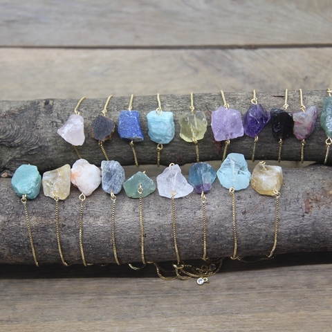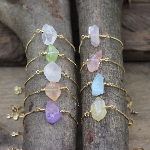 カラフルなボヘミアブレスレット女性用幾何学的天然石英ビーズ生クリスタルポイント金メッキチェーン調整可能流行