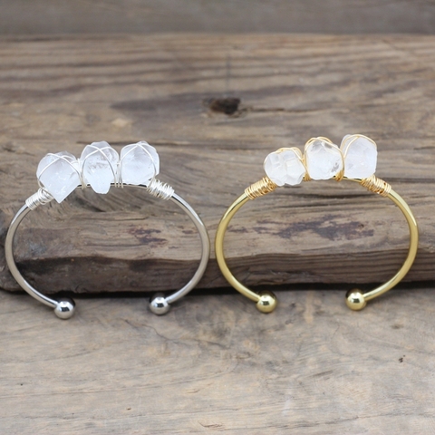 生クリスタルポイントオーラクォーツストーンバングルシルバー金メッキワイヤーラップ不規則なオープンブレスレットファッション女性のジュエリーギフト